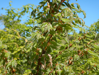 - 苗畑のブナが芽だしの頃なので観察すると、葉が広がっているもの、毛がたくさんついているもの、まだ芽が出たばかりで色が濃いもの、などいろいろあります。同じ環境でも遺伝子の違いなのか個性が出ています。