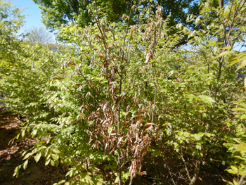 - フェンスにタラの芽のような、クルミのような葉をしたトゲのある木があり、皆で何だろうと調べたらカラスサンショウで毒があるとのことで佐々木さんが伐って処分しました。
