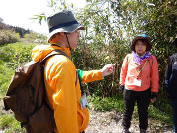 - 今回のガイドは山崎会長、宮井さん、払川さんのお三方です。会長からは「ゆっくり歩いて留山の自然を楽しんで欲しい」とあいさつがありました。