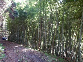 - いつもの鬱蒼とした竹林を通りました。上の川に沿って歩きます。思ったよりアブもいなくて日陰は快適に歩けます。