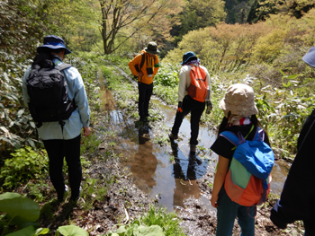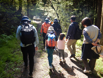 - 路面に水が流れているところや急斜面なところもありますが、子ども達も元気に歩きます。