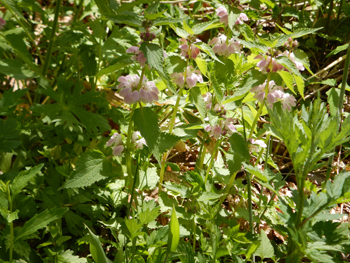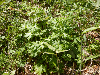 - 林道周辺はトリカブトが多く生息しておりニリンソウも混生しているので山菜採りには危ないところです。オドリコソウも盛りです。 日差しが強くて暑くなり上着を脱ぎました。
