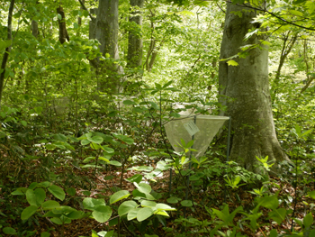 - 県の林業研究研修センターで実施しているブナの落下調査の現場です。