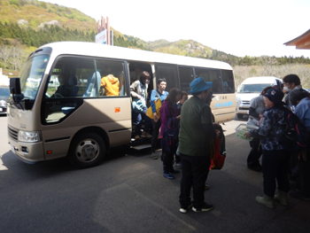 - 無事皆さん下山してバスに乗り込み、体験館に到着しました。