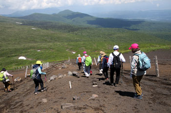 - 焼森に向かう・・・高山植物保護柵のある火山砂礫帯は、高山植物の中でも人気ナンバーワンのコマクサ群生地帯。