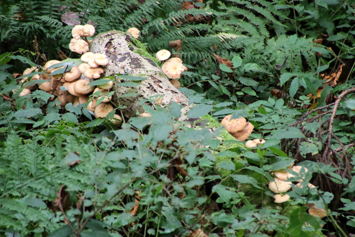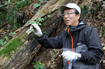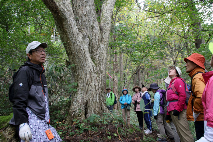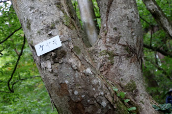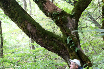 - マイタケが生えるミズナラの大木・・・東北の森でキノコの王様と言えば、ミズナラの大木の根元に生えるマイタケである。味も香りも良くお金になるので、山のプロが採るキノコの代表である。これに当たると、舞い踊って喜ぶことから「舞茸」になったと言われる。きのこ採りのプロでさえ、マイタケだけは別格で「見つけた」とは言わずに「当たった」という。