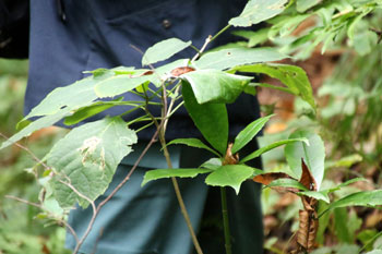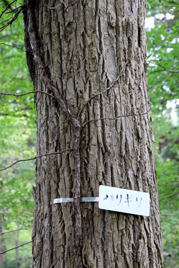 - ハリギリ・・・成長が速く、大きくなると、堂々たる風格があり、樹皮も縦に深く裂ける。キリに似ていて、若い幹や枝にトゲがあるのが名前の由来。ウコギ科の中では、例外的に良質で有用な材がとれ、林業家の間では、もっぱらセンとかセンノキと呼ばれている。若葉は、山菜として珍重される。