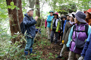 - キノコ観察会講師・・・秋田きのこの会会長 菅原冬樹さん、植物について 和田覚さん(東北植生研究会)、菌根共生など村田さん、久保さん