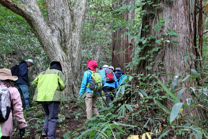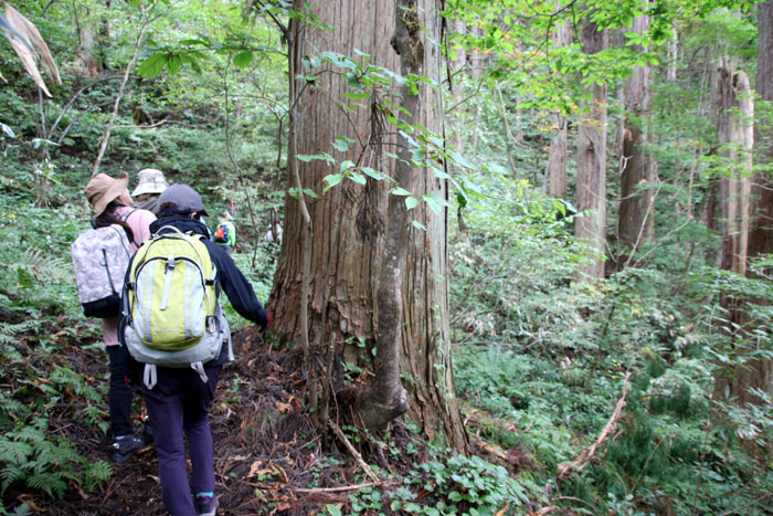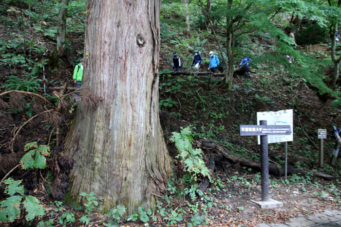 - 終点の天然秋田スギ・・・道路沿いにあり、誰でも気軽に触れることができる巨樹。直径約146cm、樹齢約230年。