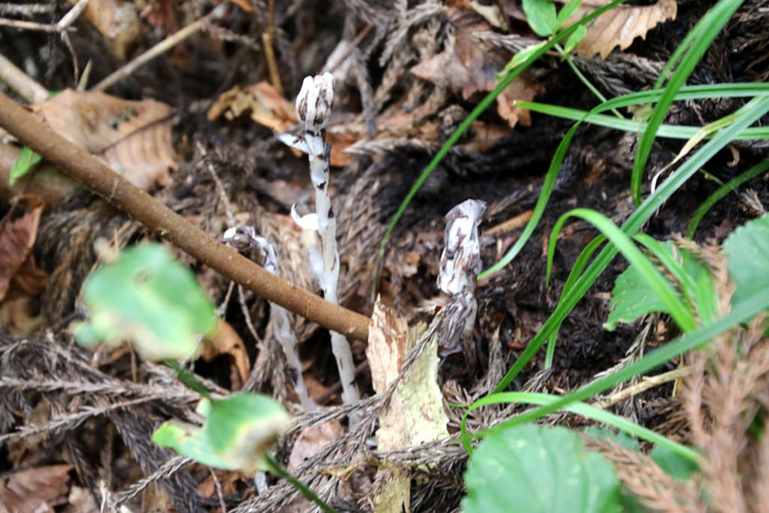 - アキノギンリョウソウ・・・名前の由来は、ギンリョウソウに似ていて、秋に花をつけることから。木陰に群生し、光合成を行わない腐生の草本。