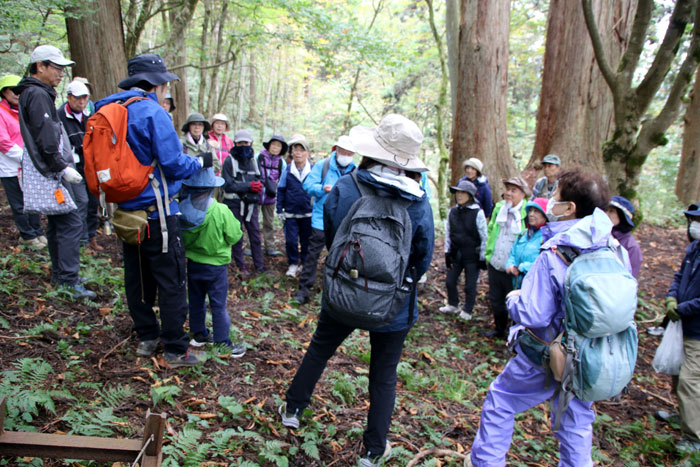 2025年10月11日(土)、森の学校「縄文時代に学ぶ『七座原生林きのこ観察&伊勢堂岱遺跡探訪』」が、能代市二ツ井町七座山及び世界文化遺産・伊勢堂岱遺跡を会場に開催された。一般参加者等37名が参加。天然秋田スギの巨木が林立する原生林の中の登山道を歩きながら、食用キノコから毒キノコ、生きている虫にとりつき殺してしまう冬虫夏草、森を支える菌根菌、散策コース沿いの植物について学んだ後、午後から世界文化遺産・伊勢堂岱遺跡を訪れ、キノコ形土製品は何に使われたのかなどに思いを巡らせながら、秋田が誇る山菜文化、キノコ文化は、縄文時代から脈々と変わることなく受け継がれてきた伝統的な食文化であることを学んだ。