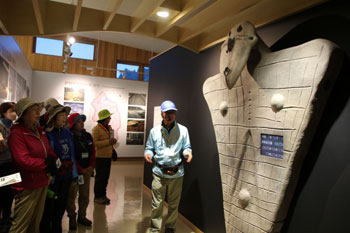 - 伊勢堂岱遺跡ガイド・・・縄文館でのボランティアガイド「伊勢堂岱遺跡ワーキンググループ」の戸嶋さん