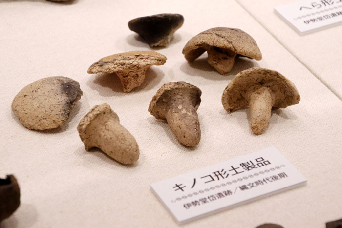 - キノコ形土製品・・・「北海道・北東北の縄文遺跡群」からは、様々な形状をしたキノコ形の土製品が出土している。これが何に使われていたかについてはいまだ明確な結論がでていない。例えば、祭祀に用いられたという説や、食用となるキノコと毒キノコを見分けるための見本に利用したとの説などがある。少なくとも4千年以上前の縄文時代からキノコを正確に認識し、生活の中で活用していたことを物語っている。