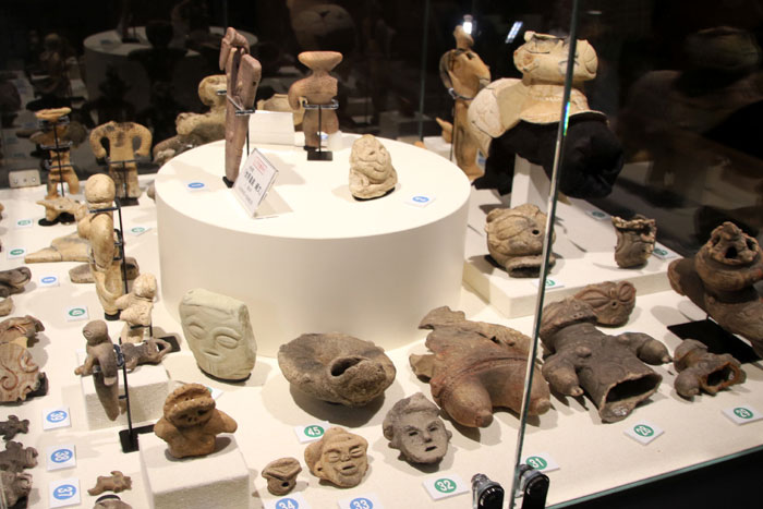縄文中期における土偶の絶対多数が、バラバラに壊された状態で見つかる。注目すべきは、首や四肢の付け根の接合部をあえて壊れやすく作ったものがあること。これは、土偶に傷のついた身体の部位の身代わりになってもらったのではないかという「形代説」があり、他民族には見られない興味深いものである。