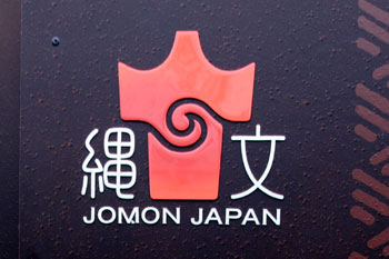 - 縄文遺跡群ロゴマークは何を表現しているか?・・・全体を縄文土器に見立て、北海道と北東北の形を、縄文時代のパワーを象徴するような渦巻きの形で繋いでいる。図形の色は縄文時代の漆器や土器にみられる赤漆色とし、構成資産の分布している範囲を濃い目の色のグラデーションで表現している。デザインの左右に「縄文」の文字を、下部に「JOMON