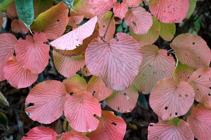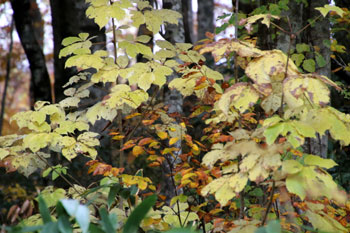 - オオカメノキ(ムシカリ)・・・黄色から赤紫色、紅色になり、美しく紅葉する。