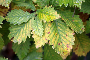 - ホオノキの黄葉・・・ホオノキは黄色から褐色に色づく。