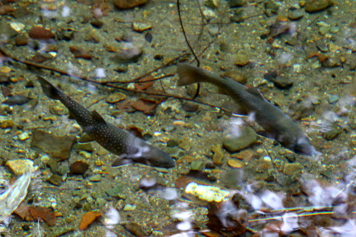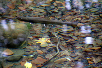 - ブナ林に囲まれた池の丸太イワナ・・・休暇村手前に、ホンナ沢から清流が流れ込む池がある。その池の透明度は高く、丸々太ったジャンボサイズのイワナが悠然と泳ぐ光景を鑑賞できる。イワナ好きにはたまらない池だが、「釣りは禁止」につき注意!