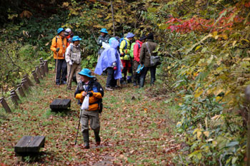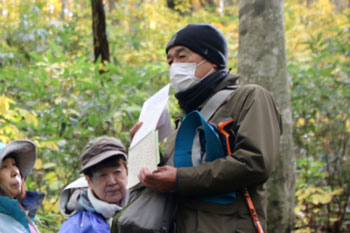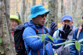 - メインガイド・・・秋田駒ヶ岳・乳頭山周辺でパークボランティアをしている森の案内人・亀井健一さん、植物に詳しい森の案内人・菅原與志美さん。2班に分かれて出発。