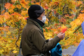 - 同じ木でも葉の色が違うのはなぜ?・・・赤色のアントシアンの生成には、日光、夜間の冷え込みが条件となっている。枝先の葉に比べ、木陰、葉陰の葉は、日中の光、夜の冷え込みが不足しているので、同じ木でも赤と黄色が現れる。これは紅葉する木全てにあてはまるという。