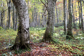 ちなみに日本海側のブナは、樹皮が白っぽいので「シロブナ」とも呼ばれている。