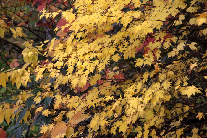 - ベニイタヤ・・・黄色に黄葉し、やがて赤褐色になる。