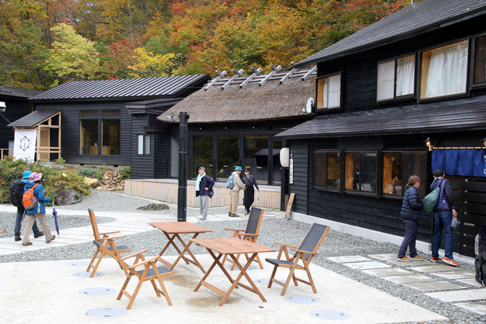 - 新しくなった孫六温泉 六庵・・・先達川沿いに建つ湯治場で、「孫六温泉 六庵」としてリニューアルオープンしている。