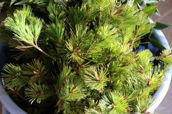- 松・・・歳神様が天から降りてくるのを「待つ」という意味がある。また松は常緑樹で、冬でも枯れないことから、永遠の生命=「長寿」を象徴する縁起物である。今回の松は、高山帯のハイマツで五葉松。