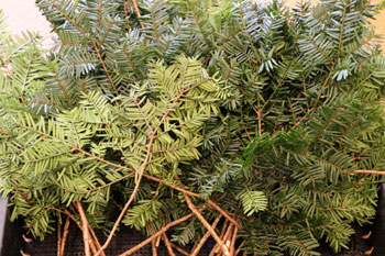 - イチイ(一位)・・・神官が持つ笏(しゃく)に使われる木。学業や商売などで一位になることを祈念して植えられる縁起物。イチイの木から抽出された成分を元に世界中で抗がん剤として利用されている。材の優れた弾力性と強度から、最高の弓材として重宝されている。名前の由来は、伝説によると、鬼神が降伏した記しとして、イチイの木でつくった笏を仁徳天皇に献上した。仁徳天皇はイチイに笏をつくる高貴な木として「正一位」を授けたことから、「一位」と呼ばれるようになったという。