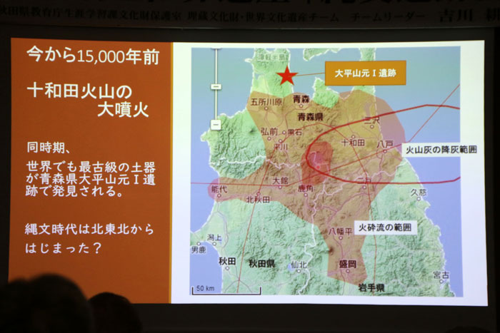 15,000年前には、現在の十和田カルデラの原形を作った巨大噴火が起きた。この噴火では、青森、秋田、岩手の広い範囲を高温の火砕流が襲い、一帯は見わたすかぎり土砂で埋まり、荒野になったと考えられている。同時期、気候も寒冷化した中で、世界でも最古級の土器が青森県大平山元Ⅰ遺跡が発見される。これが縄文時代の始まりである。