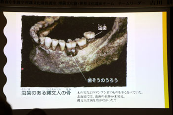 歯そうのうろうや虫歯は、木の実などのデンプン質のものを多く食べていたからと考えられている。虫歯になるほど、縄文人の食べ物として木の実が重要だったことが伺える。北海道では、虫歯の痕跡が見つかっていないので、食生活が東北とは違っていたのかもしれない。