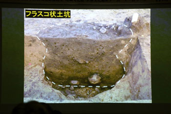 断面が理科の実験で使う三角フラスコ容器に似ていることから「フラスコ状土坑」と呼ばれている。地中の中は温度が一定で、天然の冷蔵庫と考えられている。