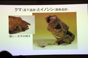 粘土細工のイノシシや骨などは見つかっている。北海道にもウリ坊の骨が見つかったりしている。イノシシが元々生息していたわけではなく、本州で捕らえたイノシシの子どもをあげたんじゃないか、と言われている。だから秋田にイノシシが自然に生息していたのか、それとも持ち込まれたものか、慎重に判断する必要がある。縄文時代は気候変動が激しく、雪が多かったり少なかったりする中で、植物相や動物相も変わっていったと考えられる。現在は見られない動物たちも、昔は生息していたかもしれない。
