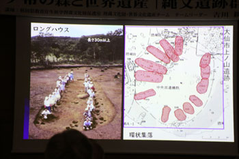 太陽を祀るというのは、世界の文明の中で共通してある。縄文時代、それを直接示すものはない。ただ、大湯ストーンサークルでは、1mぐらいの石を立てた日時計状組石が2カ所あって、それを結んだ延長線上が夏至の日の日没と重なる。反対側から見ると、冬至の日に重なる。縄文人も太陽を意識していたことは確かだが、それが宗教と結びついていたかどうかは不明。太陽と山を意識してつくられた村を研究している考古学者もいる。