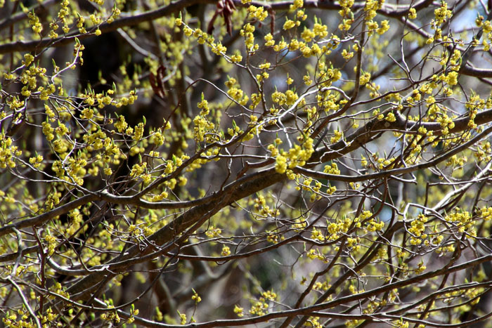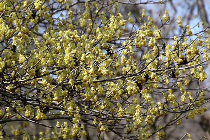 - マルバマンサクと同じく満開となったアブラチャン(樹木見本園)