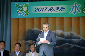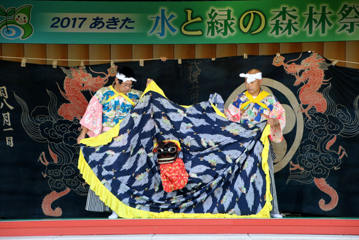 2017年7月8日(土)、「2017あきた水と緑の森林祭」が、湯沢市小野「小町の郷公園」を主会場に開催された。記念式典に続き、森づくり活動や緑の募金活動、木のおもちゃコーナー、森のクラフト、木工体験、ヤマメのガラ掛け釣りなどが行われた。「森の学校2017」では、森のクラフト教室を開催。アトラクションでは、スコップ三味線のヒーロー「ジャミセリオン」やみどりの女神トークショウ、信仰の山・神室山の麓に伝わる役内番楽などが披露された。終日好天に恵まれ、多くの家族連れで賑わった。